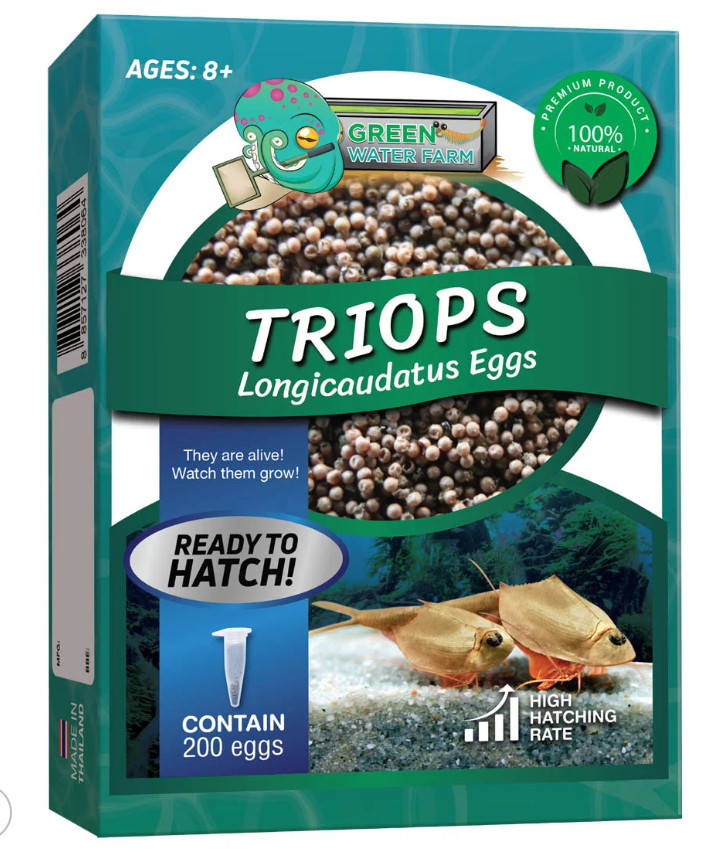 Minden doboz 200 tiszta Triops petét tartalmaz, szennyeződések, homok és föld nélkül.
